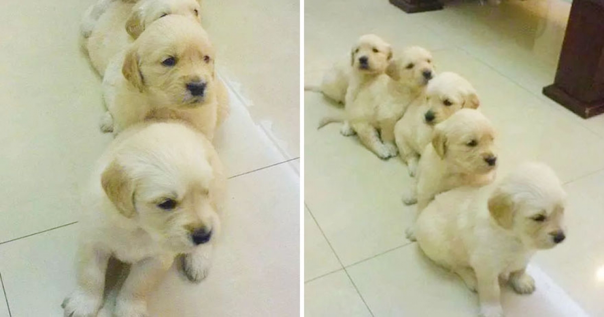 5隻金寶寶到了放飯時間就乖乖排隊 一聽到「吃飯飯囉」秒同步開動