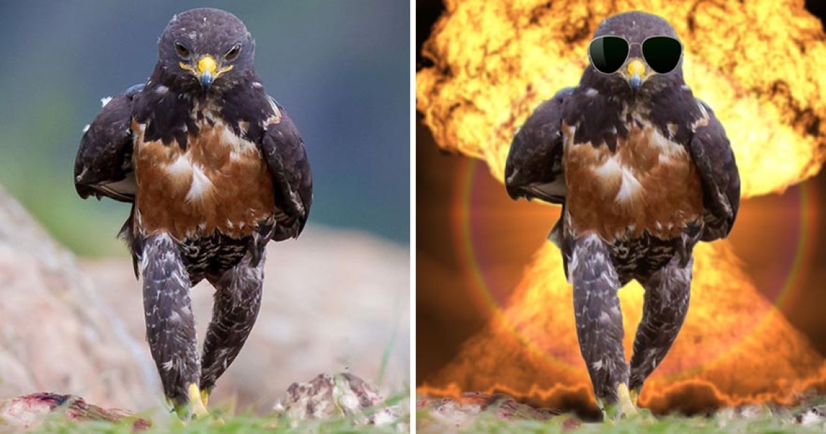 老鷹走路太霸氣!成為新修圖素材 變身「美國隊長、哈利波特」又帥又有趣