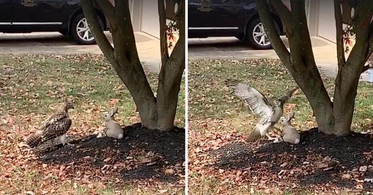 老鷹展翅裝兇被兔兔無視 幾秒後才發現真相:靠X喔~是假的