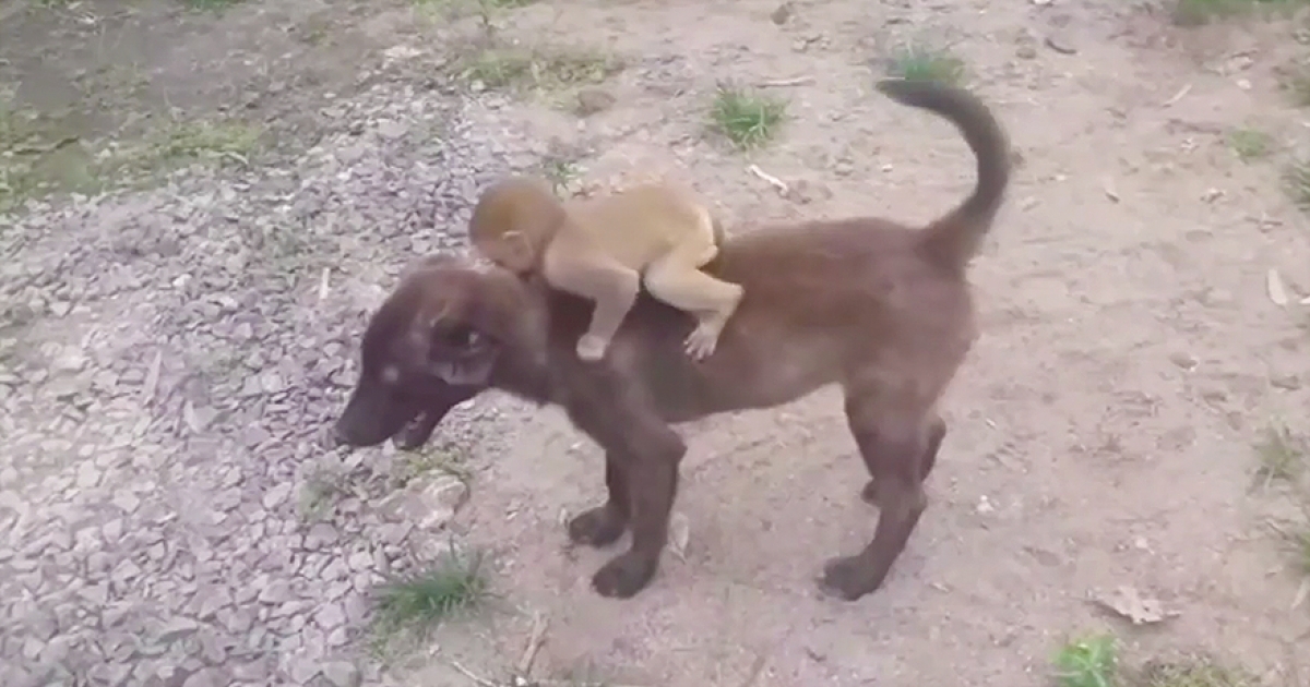 狗狗自願當浪浪小猴的馬麻 一路背牠去警局求救:請給牠食物吃吧~