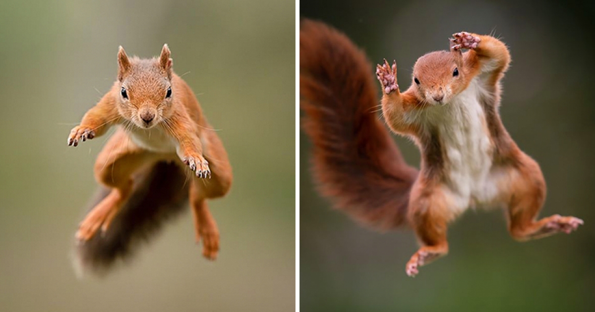 花1年時間「跟松鼠交朋友」 攝影師成功捕捉「功夫松鼠飛天」瞬間照