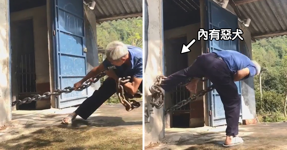 內有惡犬!阿伯大鐵鏈猛拉 眾人看到真面目笑了:奶兇奶兇的