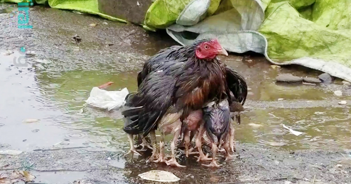 不能讓我的孩子淋到雨! 雞媽媽「用肉身當雨傘」畫面有洋蔥