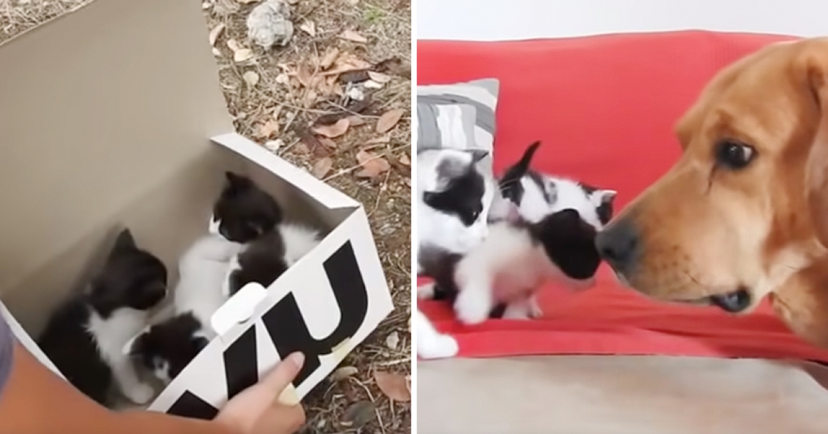 狗狗散步時發現一窩小貓咪 回家後變身超級奶爸:你們都要乖乖齁~