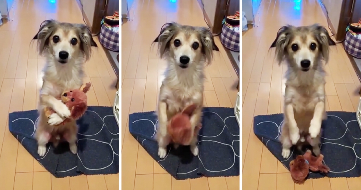 你說要留我在家自己出門? 超戲劇化狗狗「受驚到手裡的娃娃都掉了」