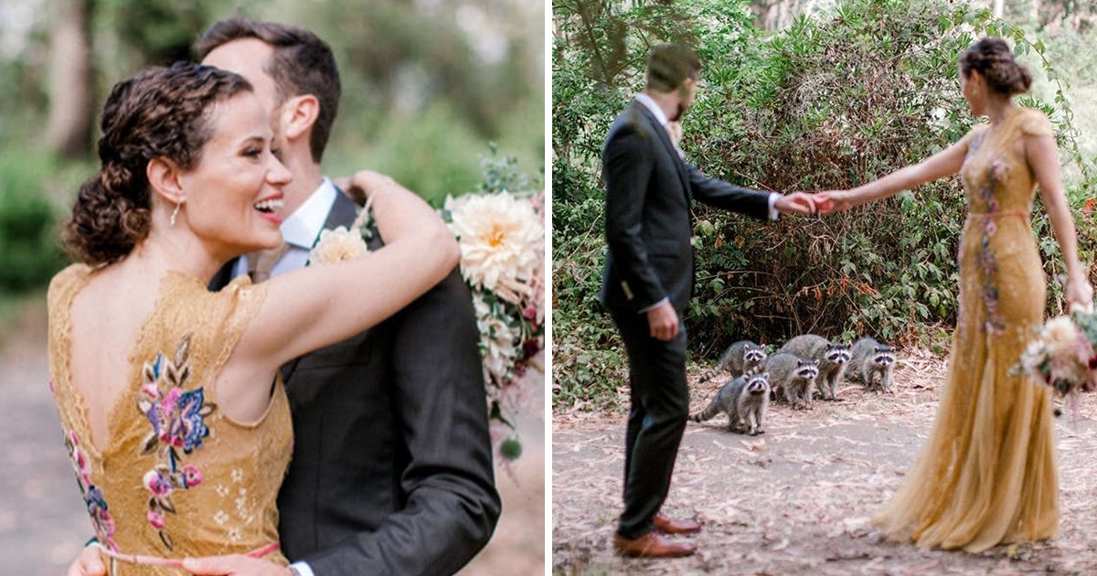 借過借過~ 拍婚紗遇到「浣熊集團」亂入 新人變配角卻笑了