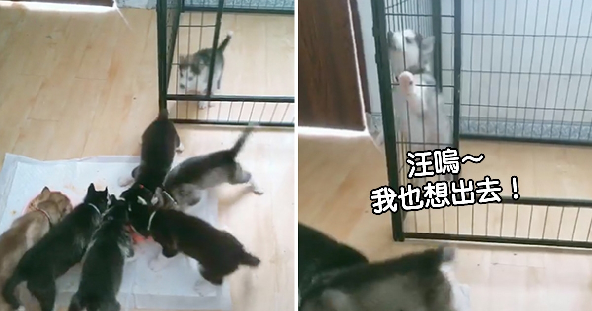 「為什麼牠們能吃到食物?」 小月月心急狂吠 沒發現旁邊就有出口