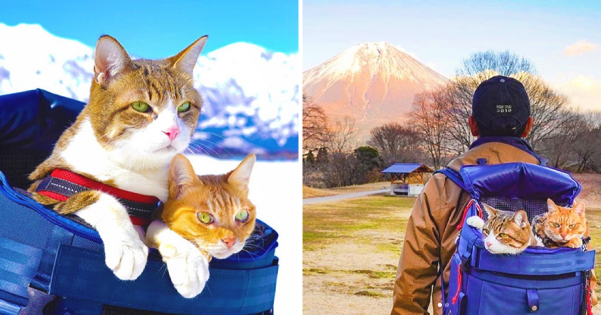 2隻貓咪裝背包、嬰兒車一起趴趴走 8年之旅「走過千多個景點」萌照超美