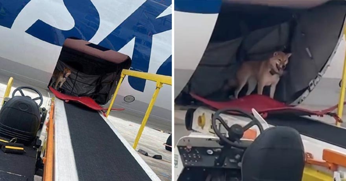 柴柴搭機從籠中逃脫!艙門一開牠「霸氣下機」 地勤全傻眼