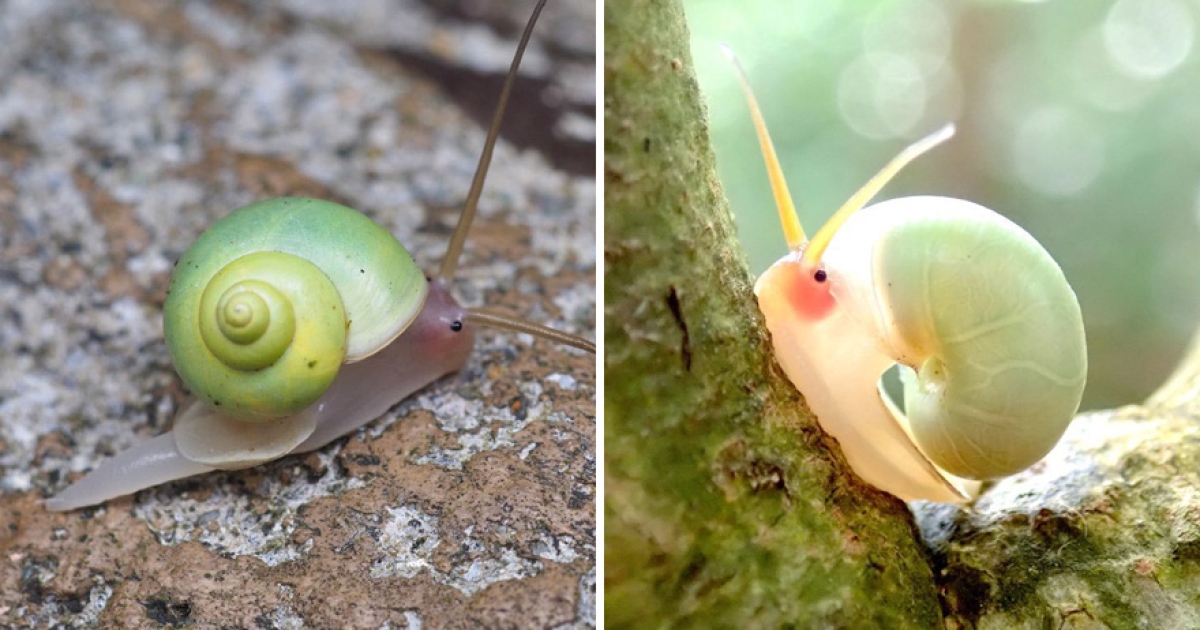 森林中的小精靈!「青蘋果嫩綠蝸牛」只有指尖大小 近看超特別眼睛太可愛