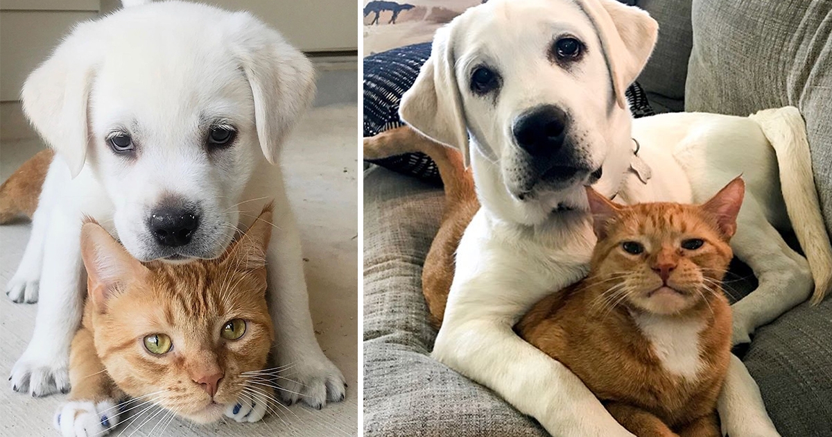 喜歡趴橘貓身上♥ 拉拉弟從小「最黏橘貓姐」 長大後「習慣改不掉」喵無奈:你太重了啦!