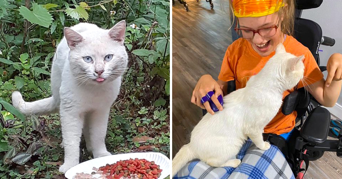 電動輪椅女孩嚇跑所有貓! 唯有「流浪白貓」見面秒撲上:就選我吧♡