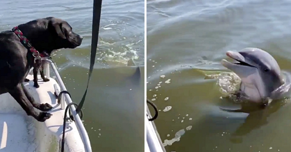 海裡的狗 VS 陸上的狗! 海豚友善「躍出水面」主動打招呼:泥好啊~