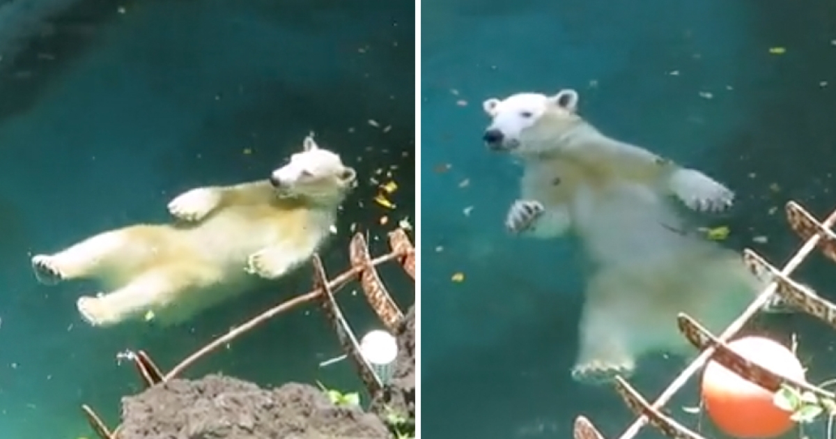 北極熊學會玩漂漂河! 「超爽仰式」順水面流下網笑:浮力熊~
