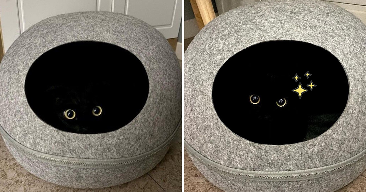 黑貓自帶隱身術!小窩長出一雙眼睛 呆萌眨眼:喵喵底加啦~