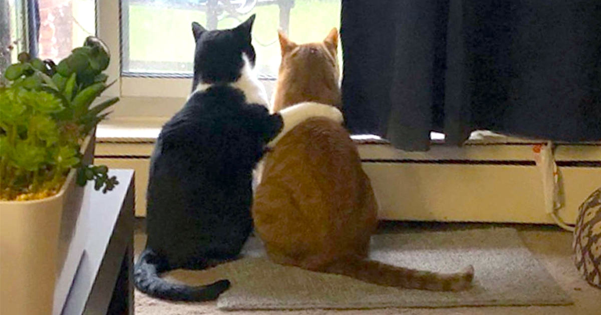 嘸驚啦~ 平常鬧翻天的貓貓們 雷雨天竟「搭肩看窗」:有我陪你❤