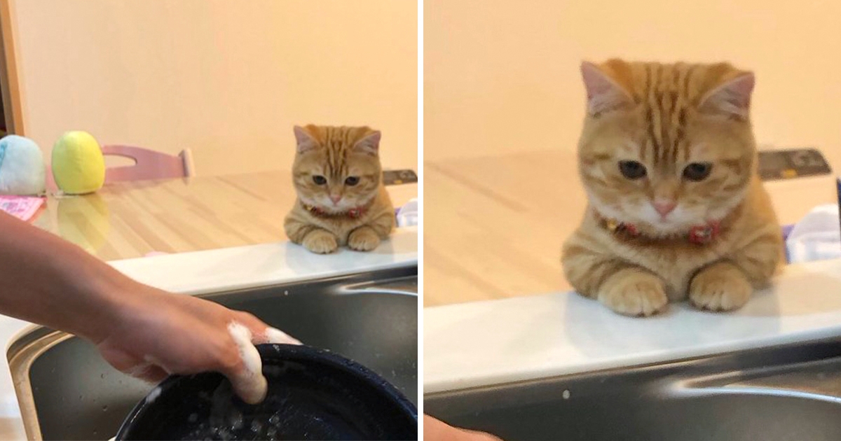 奴才洗乾淨沒?喵皇從小「趴著監督洗碗」 主人喊:這樣我會分心❤️