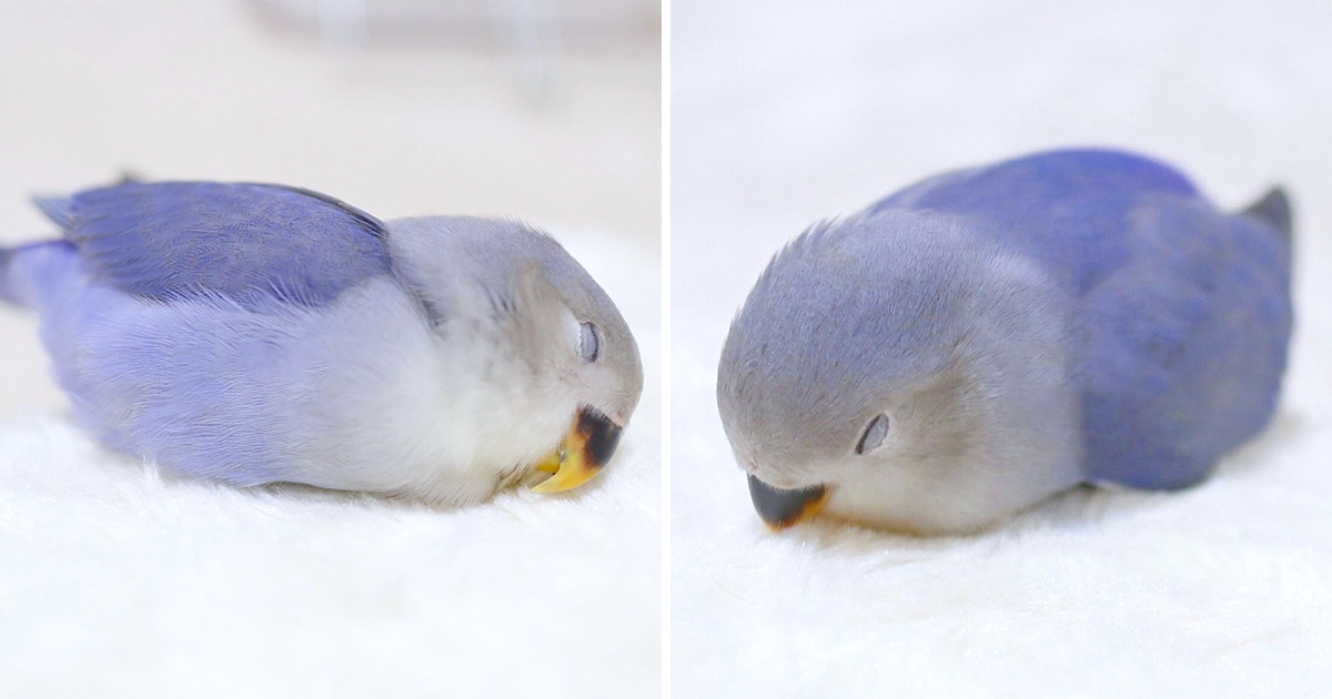 頭好重重…藍色鸚鵡「睡到沒腳腳」 睡姿讓人融化:好治癒喔♡