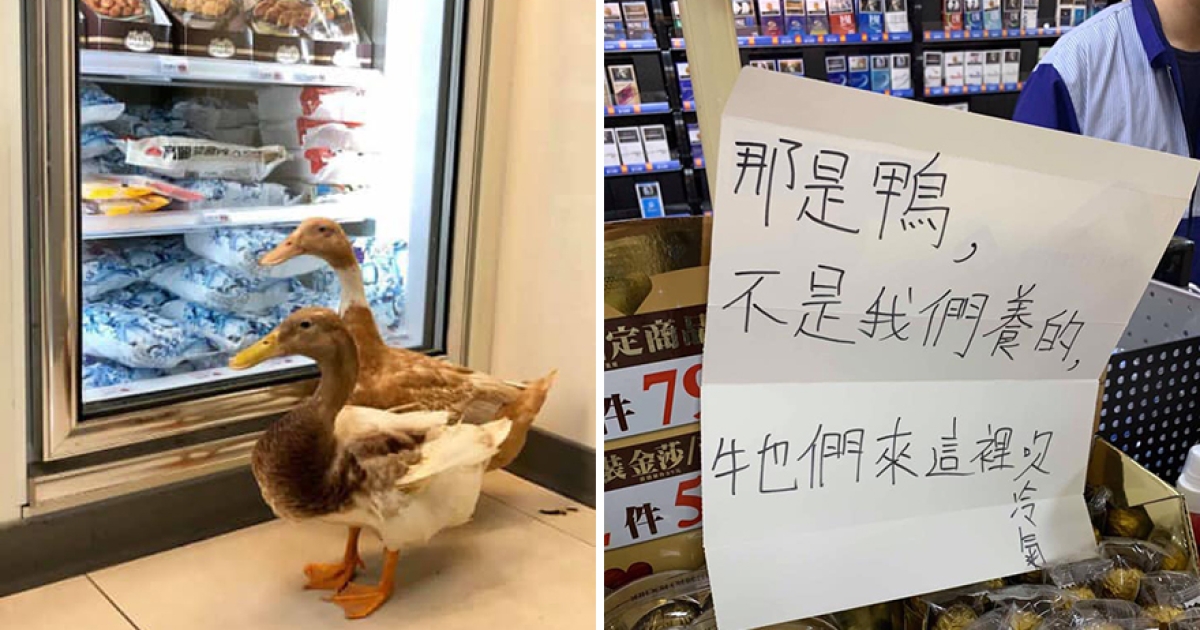 2隻鴨鴨並肩逛超商! 店員「被問到無奈」貼公告:牠們來吹冷氣的