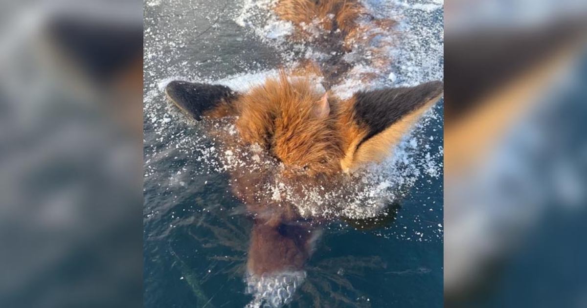 狐狸游泳到一半遭「急凍冰封」! 飛機耳+鼻噴氣泡展現最後的掙扎