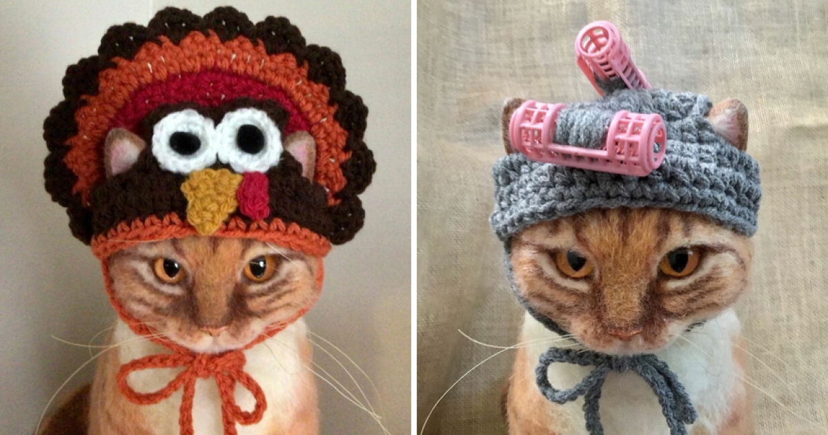 化身珍珠耳環少女!他為貓貓編織「角色毛線帽」超Q 網友一看細節嚇到:牠也假的