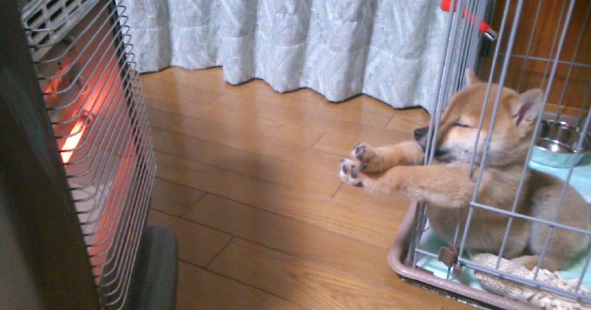 召喚暖氣~ 柴柴「伸出小短手」烤暖 瞇瞇眼太舒服直接睏去