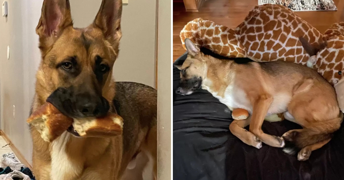 阿汪最好朋友是「一根麵包」! 每天叼著「睡午覺、玩耍」有點困惑:你怎麼越變越小啦~