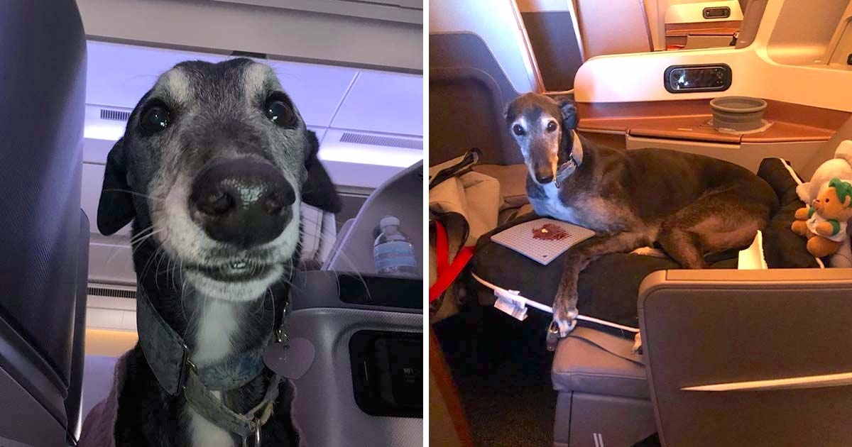好狗命!退役賽犬搭機「被升等到商務艙」 空姐高空為牠開辦生日趴♡
