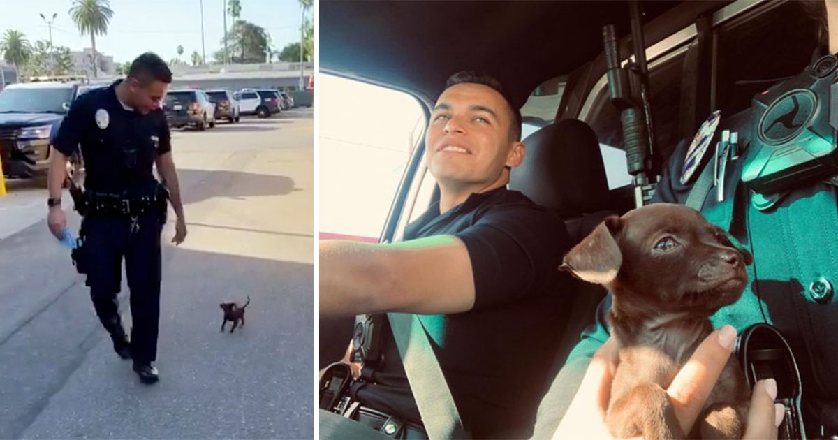 巡邏救下「黑色小不點」後牠一路緊跟! 警察當場被融化:就任命你為警犬吧❤️