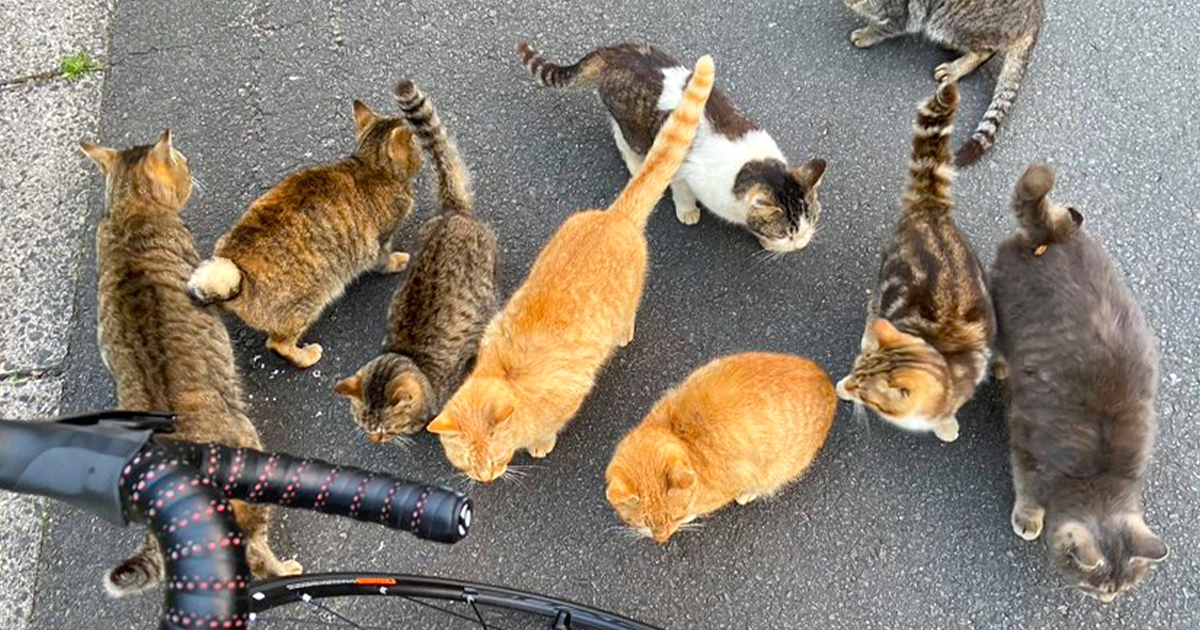騎車遇到「餓霸集團」攔路 網一看身形不簡單:交罐罐才能通行!