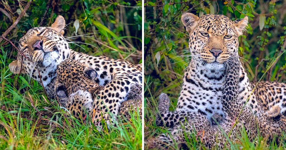 豹媽午睡「被P孩吵醒」 牠雙眼迷離好無奈:不能氣,我自己生的!