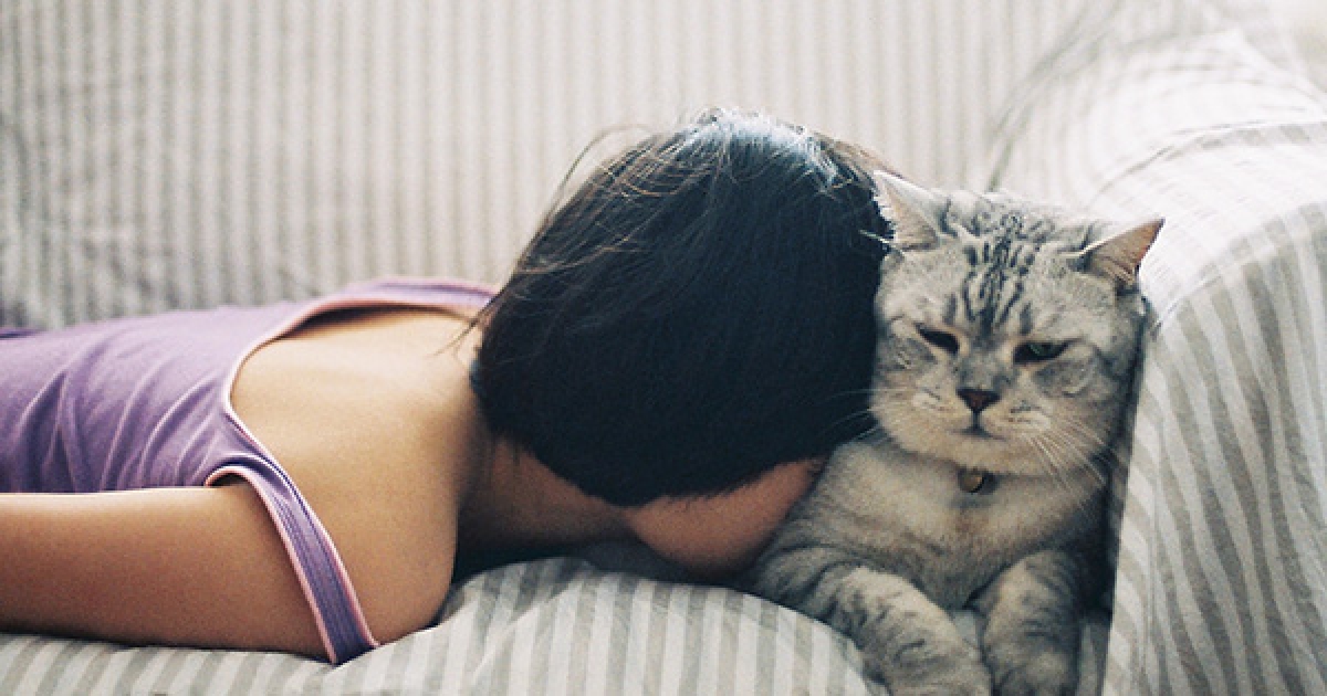 老婆靠著「貓抱枕」睡著了 老公一回家看到貓貓表情秒笑噴