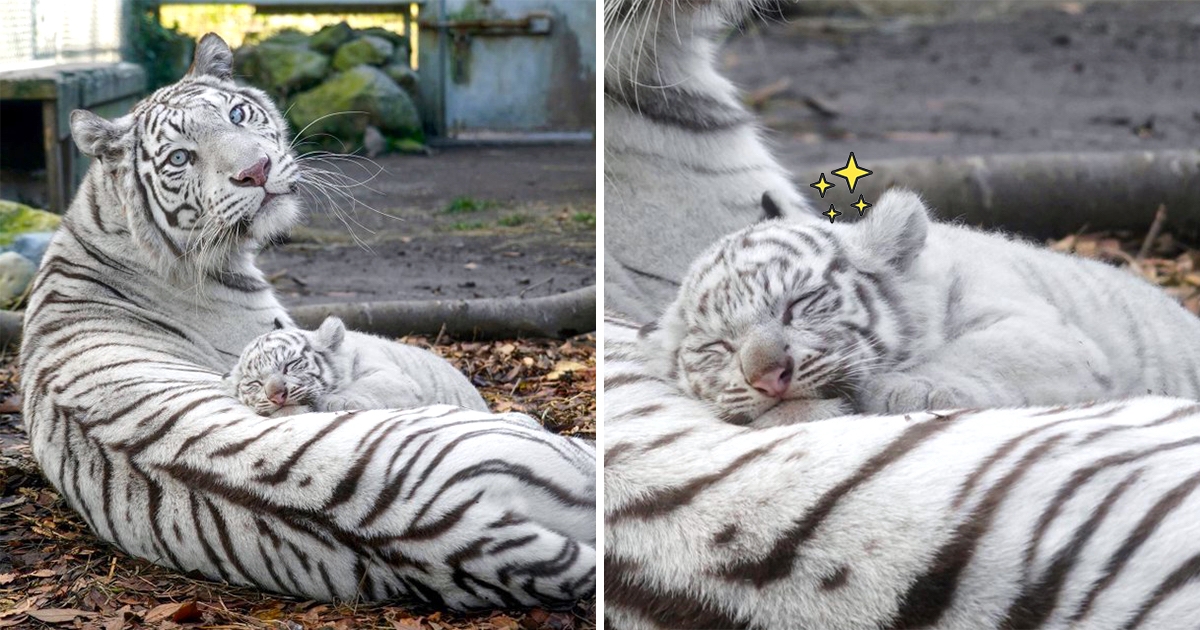 把馬麻當暖毯!雪白虎寶趴上露「天使睡顏」 虎媽得意回頭:我家孩子可愛吧?