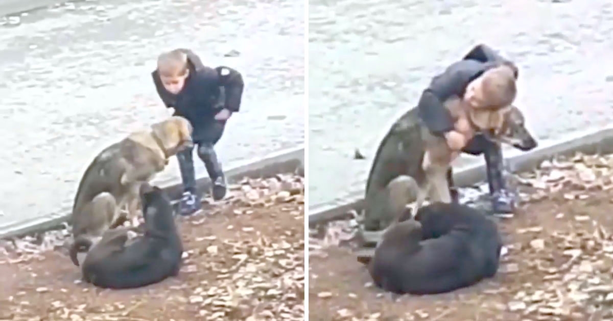 冷天流浪辛苦了!小男孩上學偶遇浪浪 「上前大擁抱」沒想到全被拍下❤️