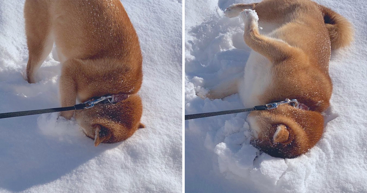 意義不明!阿柴堅持冬天散步「突刺雪地」 過一會拔出來表情超鬧:豪爽喔~