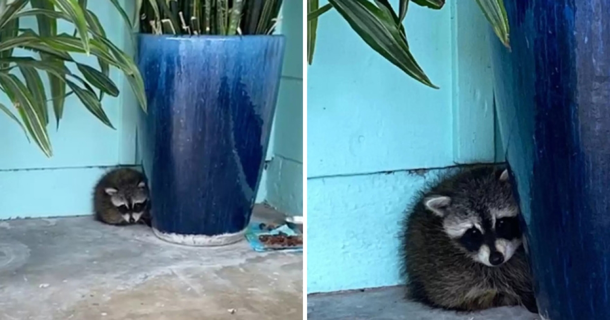 回家發現有「不速之客」闖入好驚訝! 小浣熊也害怕「躲花盆」:妳素誰…