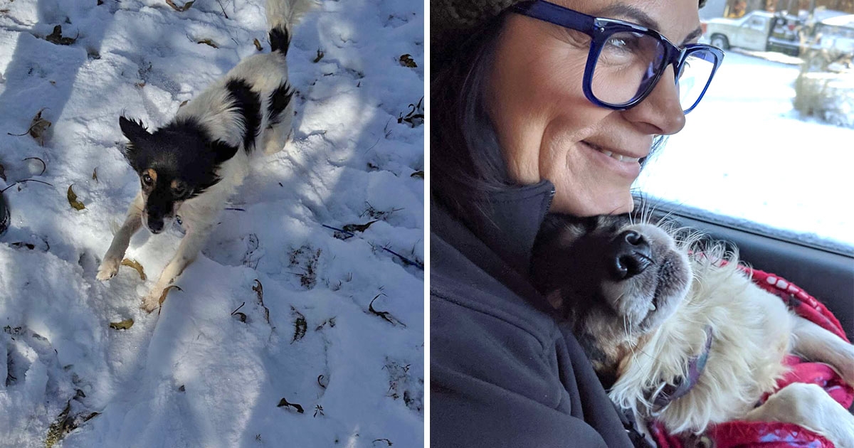 一直被鍊在雪地裡!汪汪進車內「首次感覺溫暖」 狂蹭志工:太謝謝妳了~