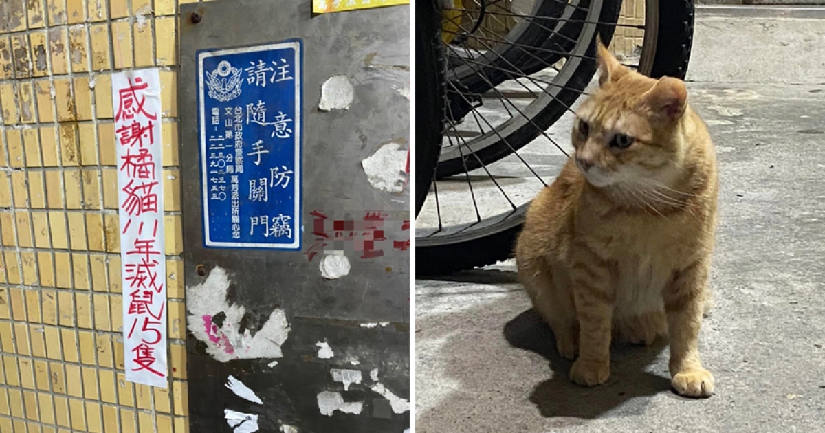 專治壞鼠叔!社區橘貓「滅鼠15隻」公告表揚 網笑:年終罐罐快獻上!