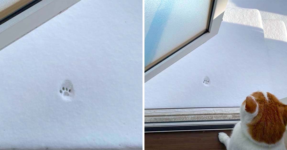 試一步就放棄了 萌貓「雪地小腳印」逗樂百萬網友:太冷不宜出門~