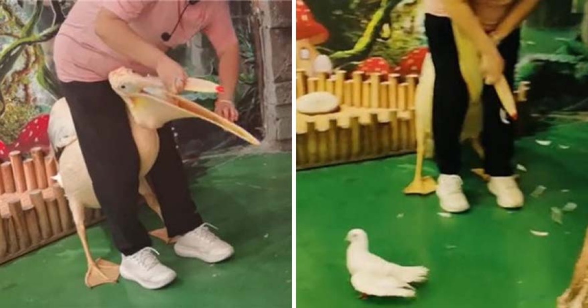 不要吃同事!鵜鶘上班偷吞其他小動物 飼養員急挖大嘴救援