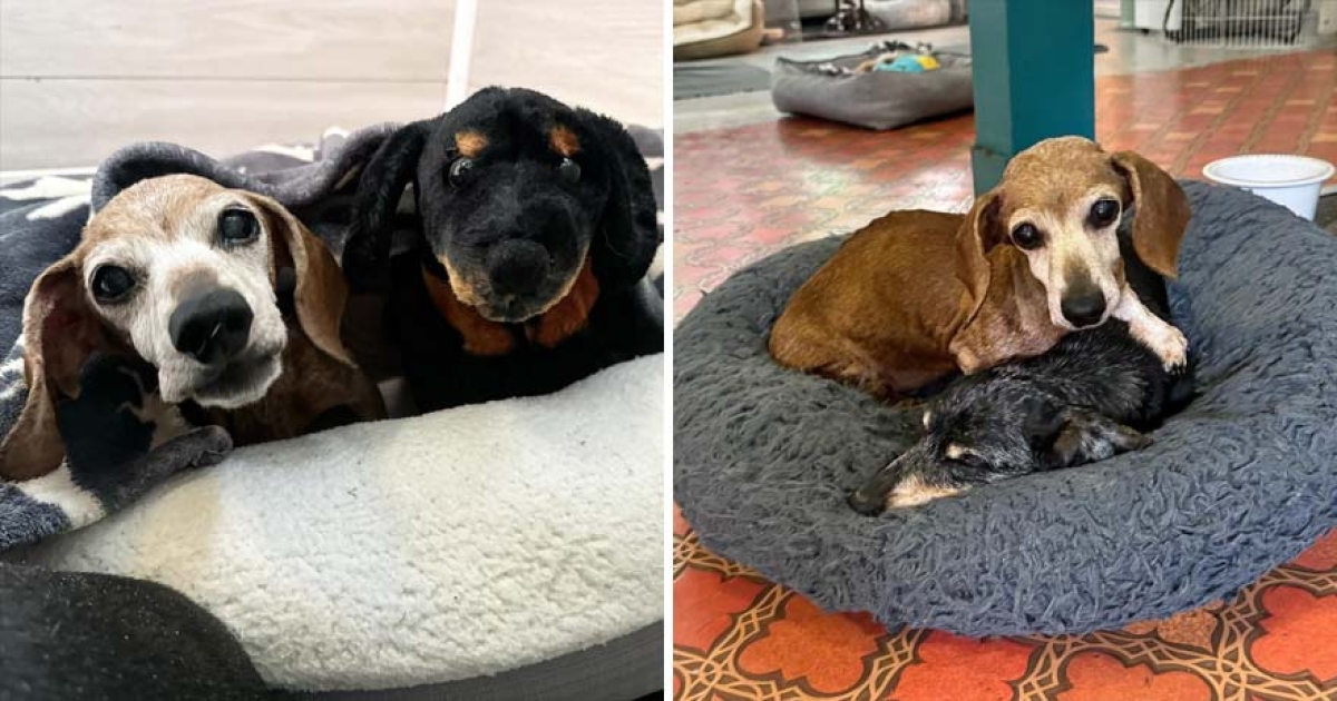 17歲狗狗朋友過世!牠緊抱「同款玩偶」不放:你回來啦!
