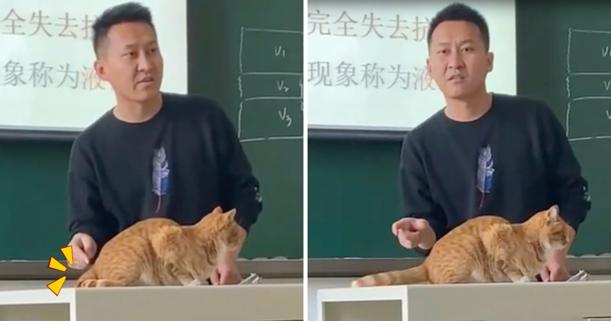 胖橘亂入課堂!老師拿牠「當教具」 牠淡定配合:下課小魚乾結一下~