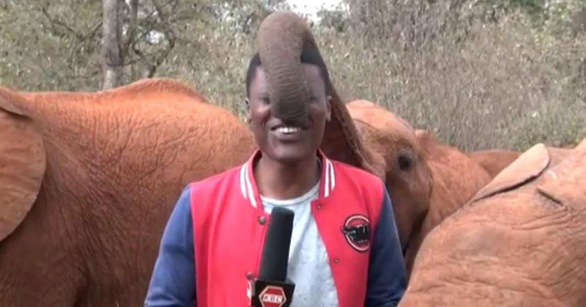 最萌放送事故!記者遭象寶寶「騷擾」 「象鼻餵嘴巴」笑翻
