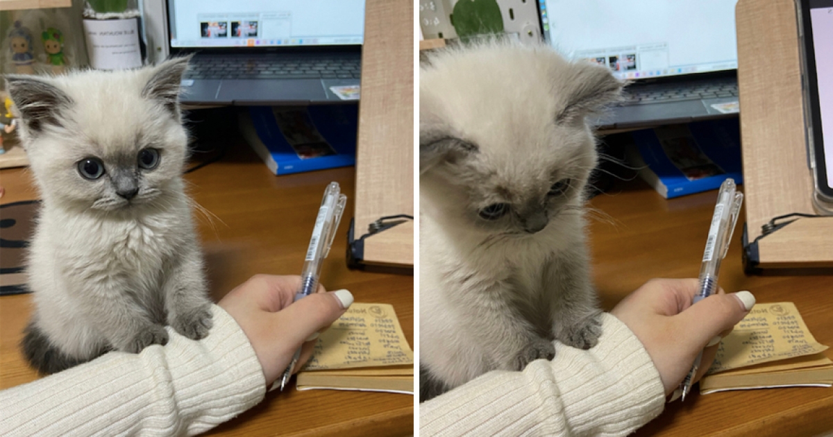奴才上班中!小貓咪怕打擾「爪爪輕輕搭手」 放無辜電波:陪偶玩嘛~