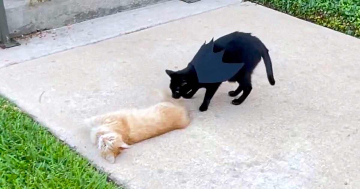 騎士路中央救下「害怕小橘」 牠被拎起轉頭賣萌道謝:英雄穴穴泥~