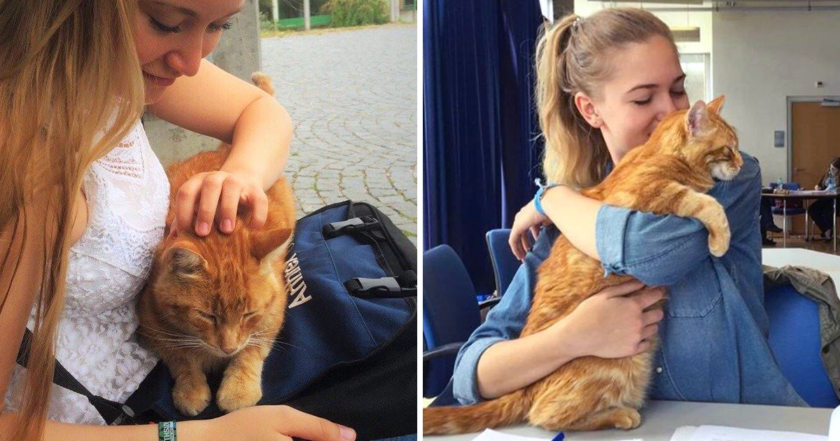 可愛胖橘「充當輔導員」來者不拒! 讓學生吸貓又抱抱:抒發一下上課壓力喵~