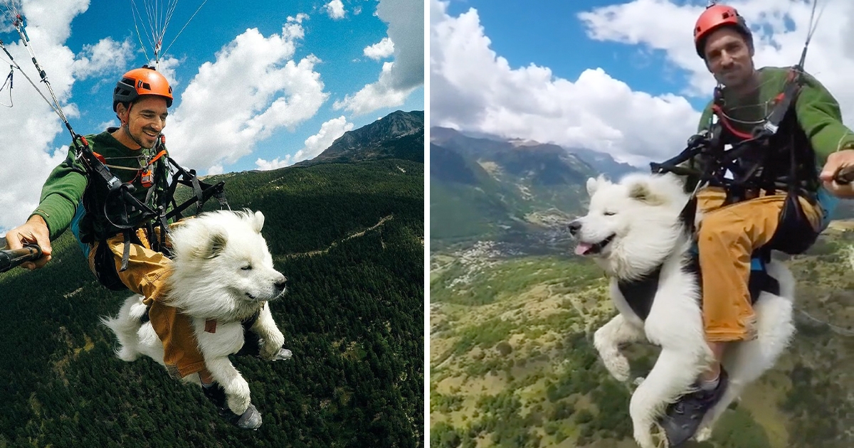 天上怎麼有棉花糖?主人帶「冒險系薩摩耶」玩飛行傘 牠表情超淡定:蘇湖啦~