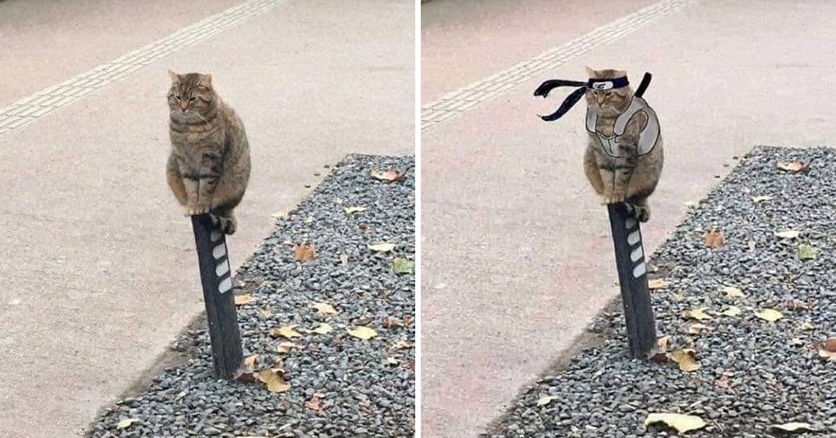 坐姿太帥! 肥貓「穩坐路燈上」霸氣外漏 網改圖「變超級英雄」毫無違和感