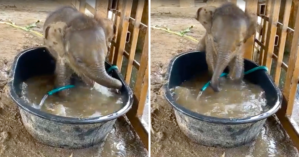 象母子從大象營救出!小象象「初次洗澡」嗨爆翻滾 還跑去跟媽報告:這葛好好玩~