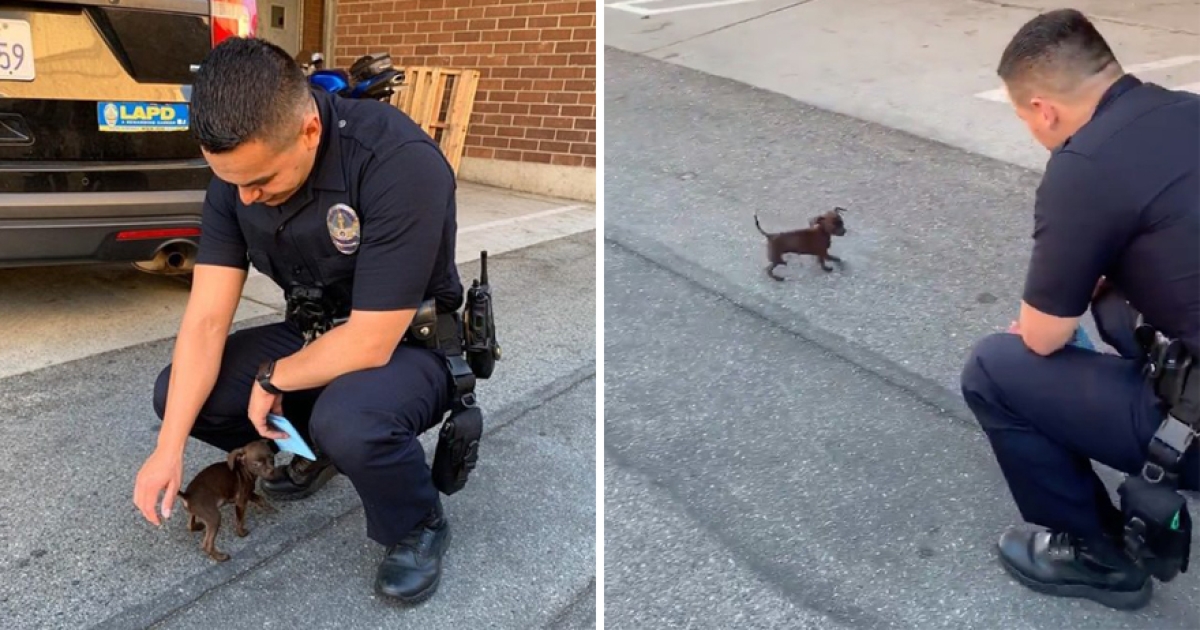 警察巡邏偶遇「迷你小歐告」緊跟求收養! 被眼神看到心軟:帶回去變警犬同事♡